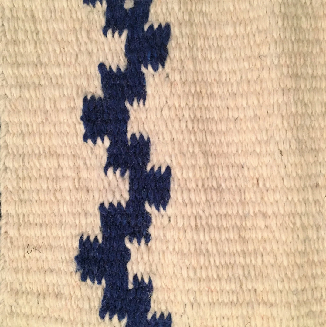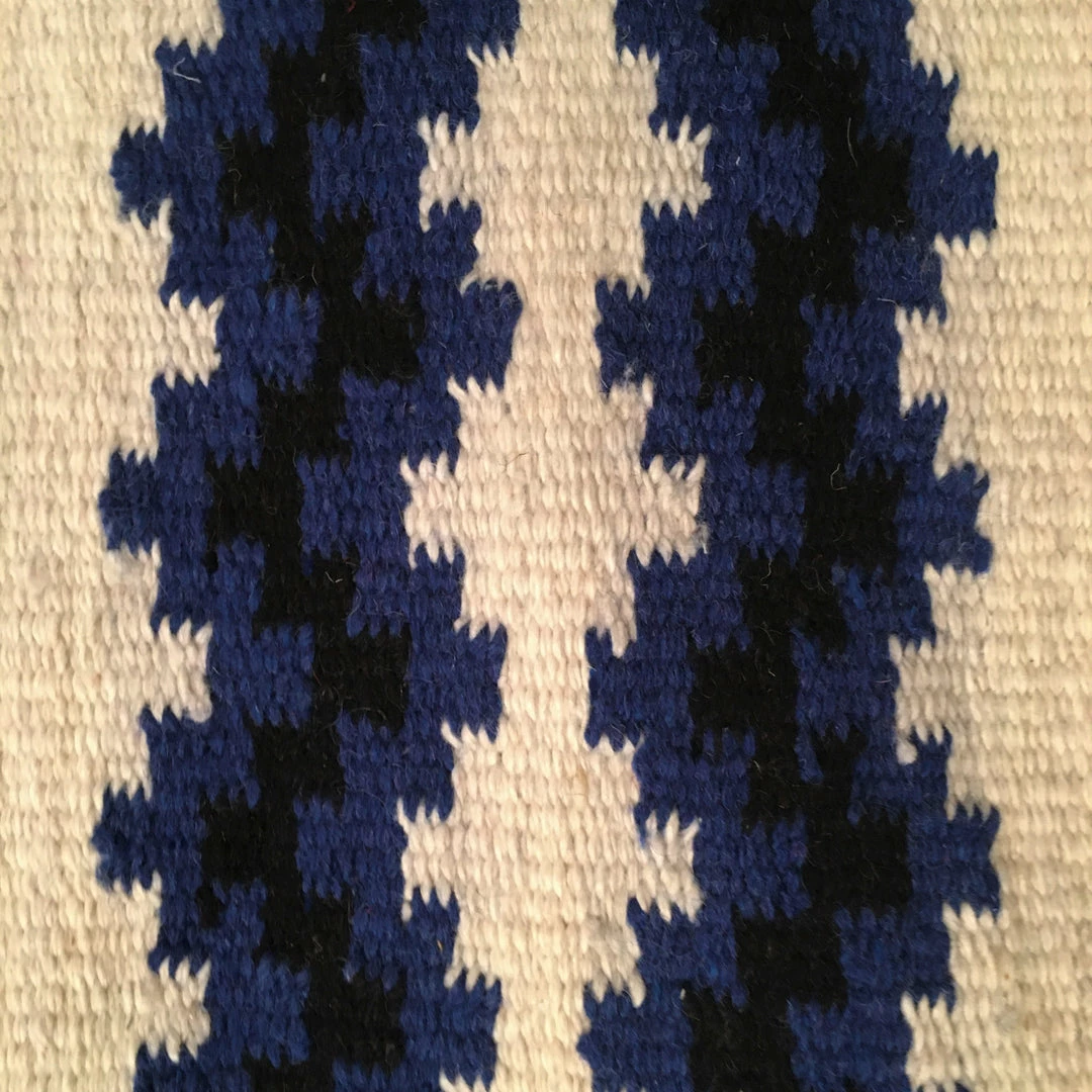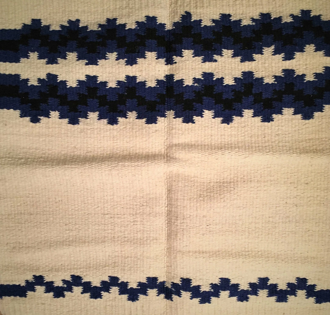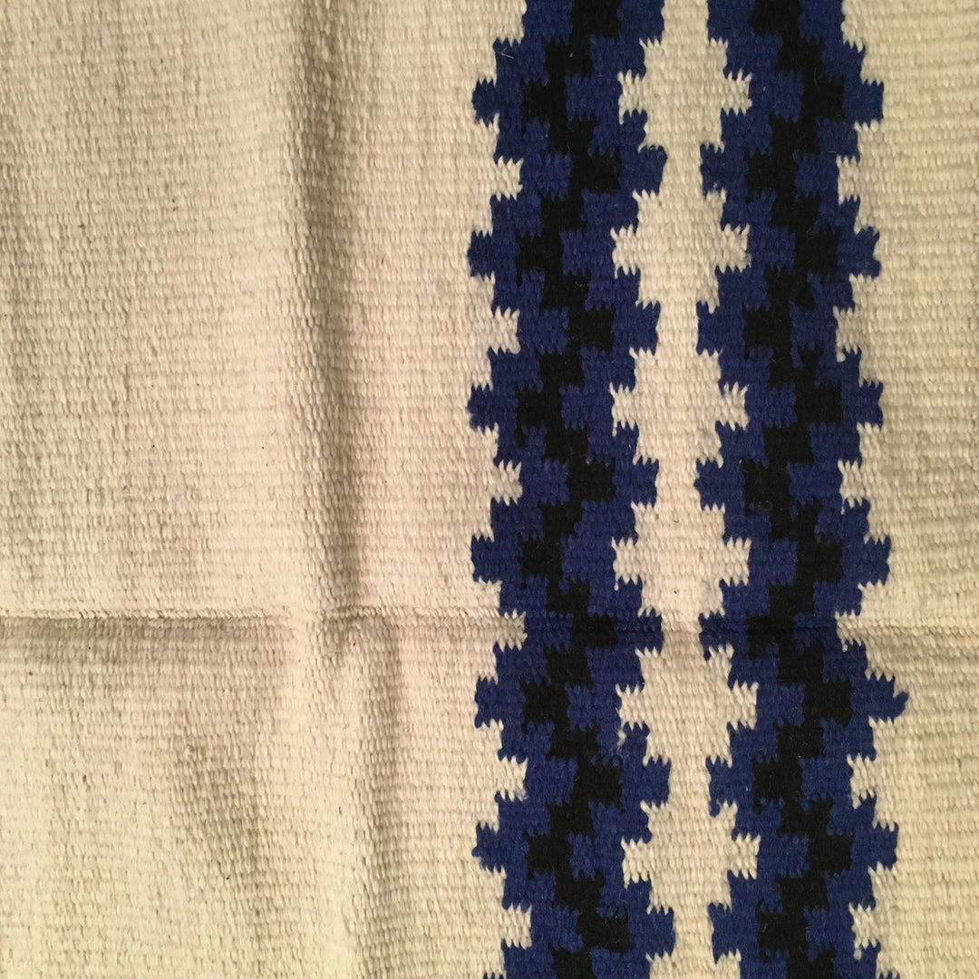 Saddle blanket “Big Country” of ivory, blue and black hand woven of wool.