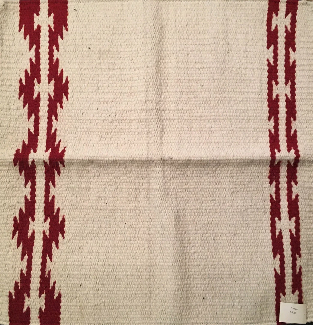 OutWest’s Purveyor, Jim Bell, holds this Zaptec design blanket of natural and dark red, hand woven of wool.