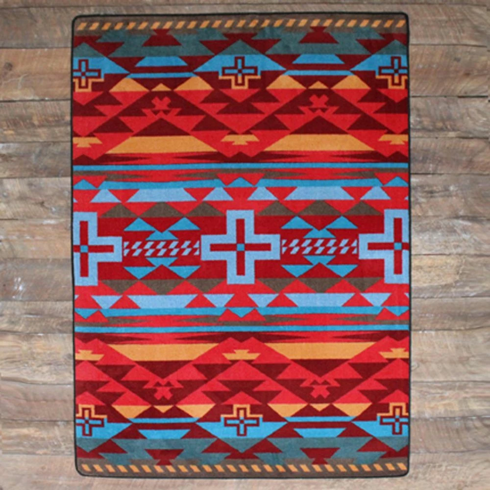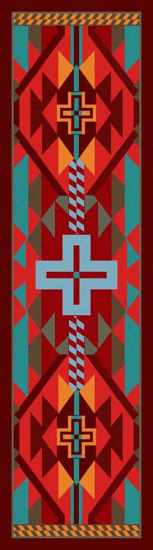 Rustic Cross, Sunset is a true rustic treasure inspired by colors of the Southwest. Create a statement in any room! Rich turquoise, reds and black showcase this best seller. Not just for floors – use on stage, in your truck bed, hang on wall or over railing. Offered in 6 sizes, made in the USA.