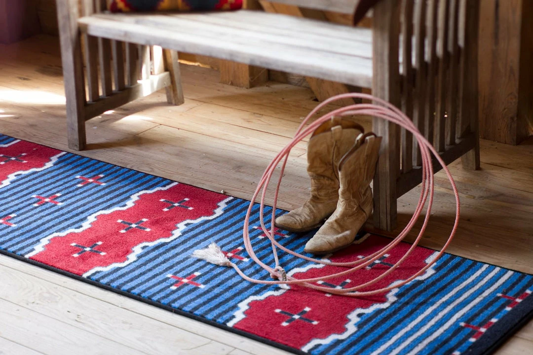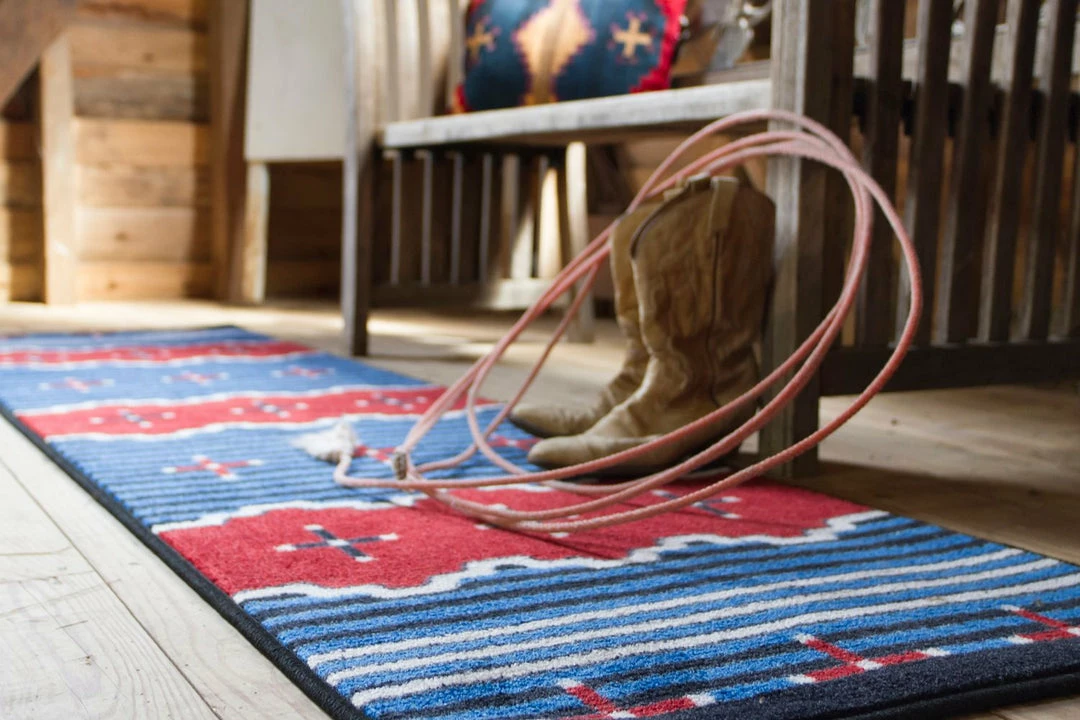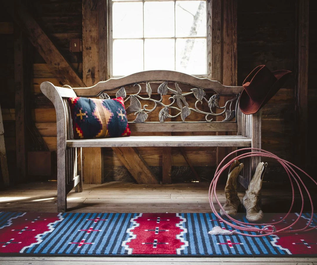 BIG CHIEF BLUE Inspired by classic Native American and Spanish designs found throughout the West and Southwest. Bring the colors,designs, and history of the West to your home or office! Big Chief rectangle area rugs in Red or Blue.