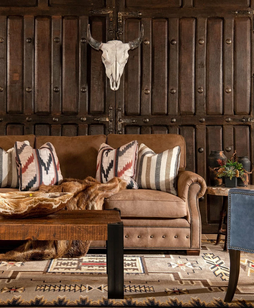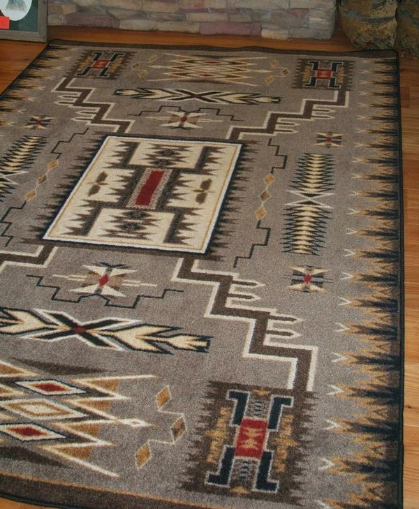 STORM CATCHER – CHESTNUT – rug, is inspired by historic textiles and classic Native American and Spanish designs found throughout the West and Southwest. The four corners of this modern rug meet in the center of the rug. This connection is made via stylized lightening-bolts. The saw-tooth edges of the design are indicative of historical storm designs. 6 sizes, made in the USA.
