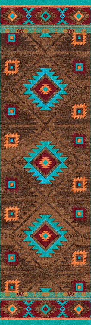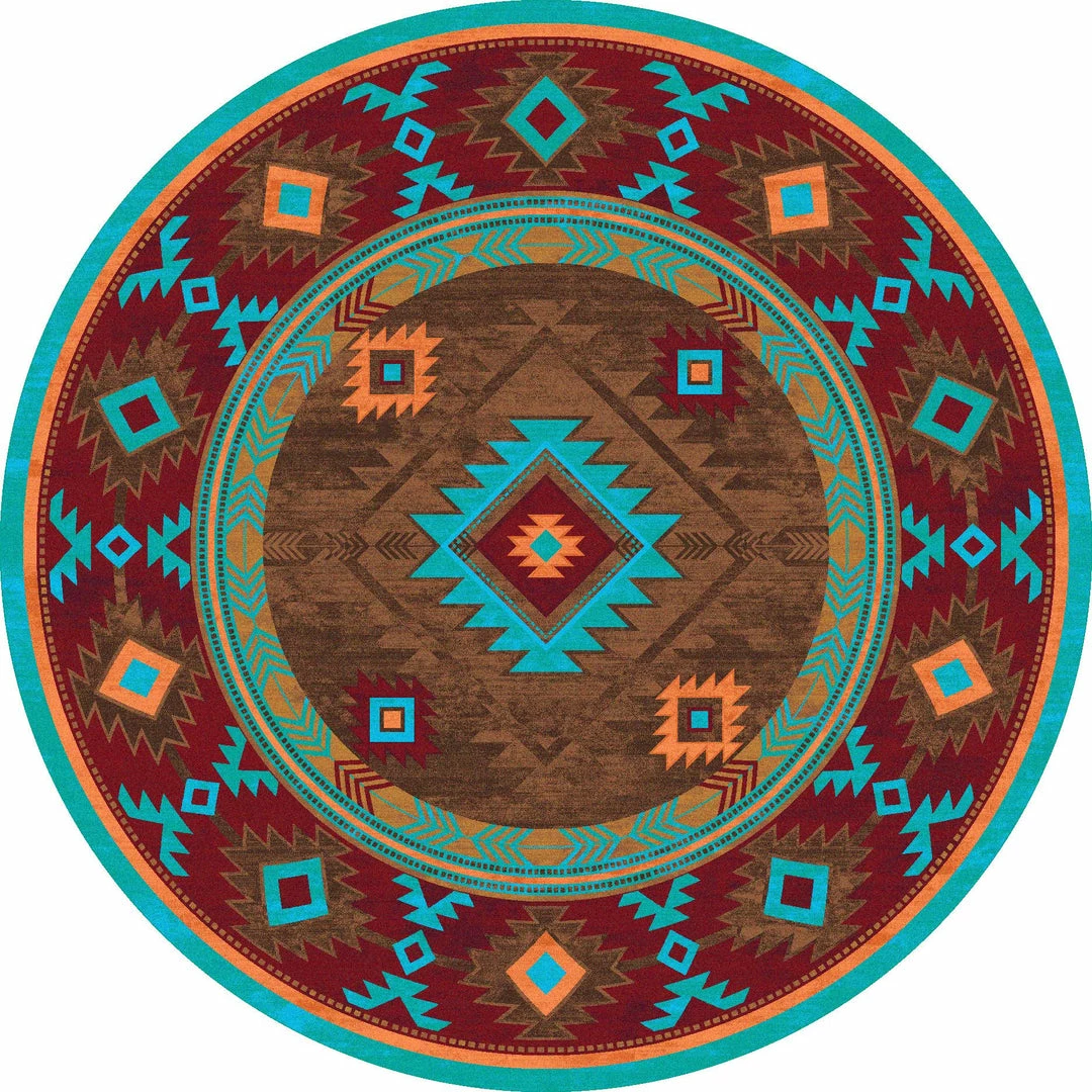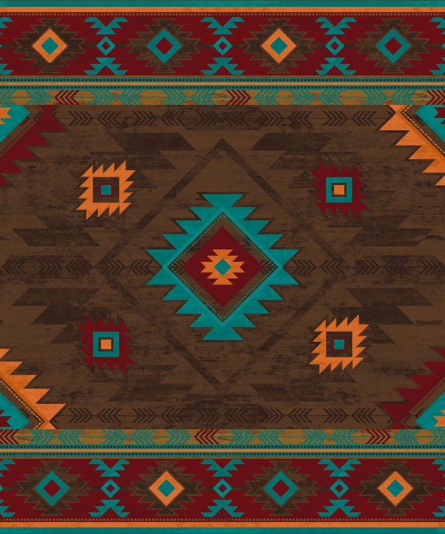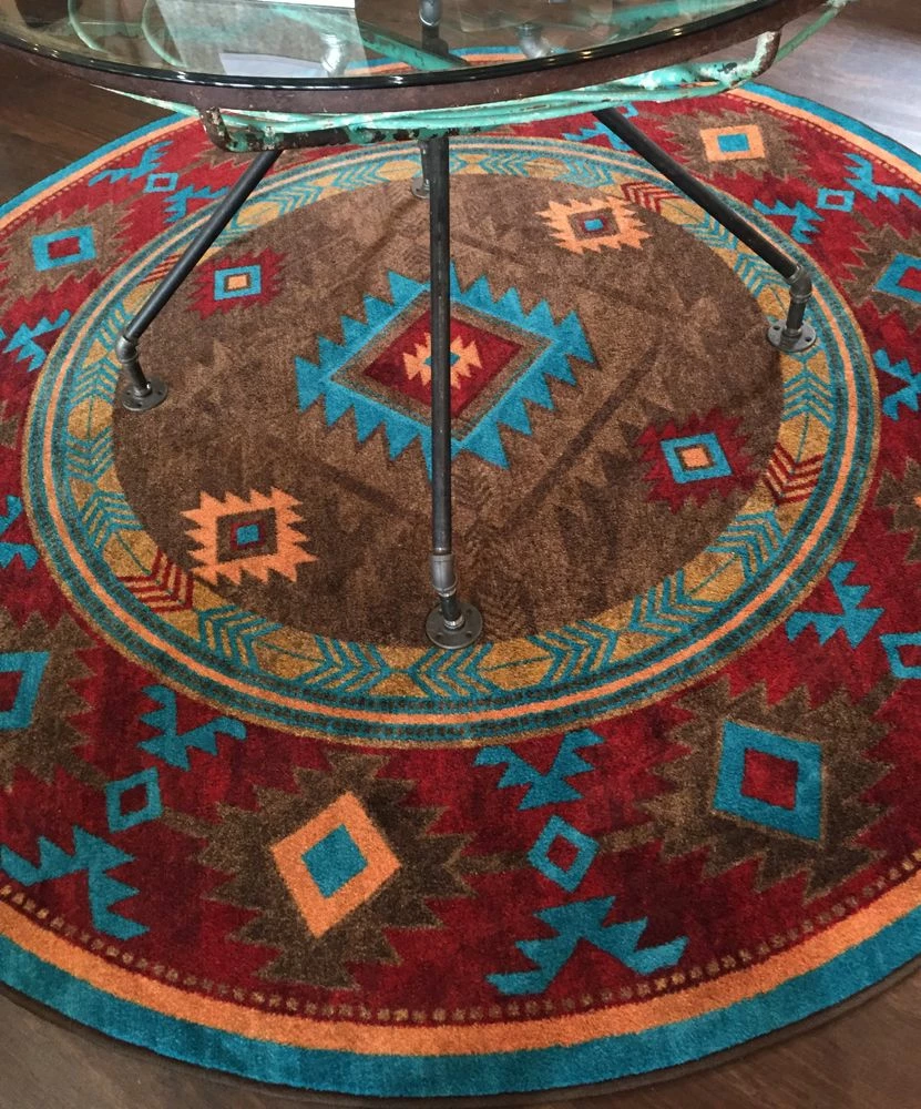 WHISKEY RIVER TURQUOISE design is rich and inviting. Bring in the colors of the southwest with this rustic-themed area rug. Great for the home, office, on stage, or cabin hideaway! Not just for floors – hang on wall or over railing. Offered in 6 sizes, made in the USA.