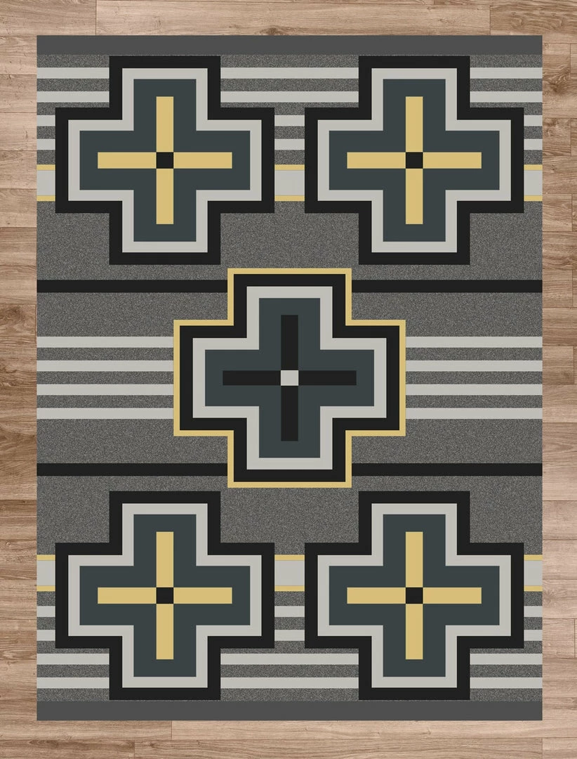 Bounty Gray symmetric design will bring the West indoors and add color to your home, cabin, or business. Not just for floors – use on stage, in your truck bed, hang on wall or over railing. Offered in 6 sizes, made in the USA.