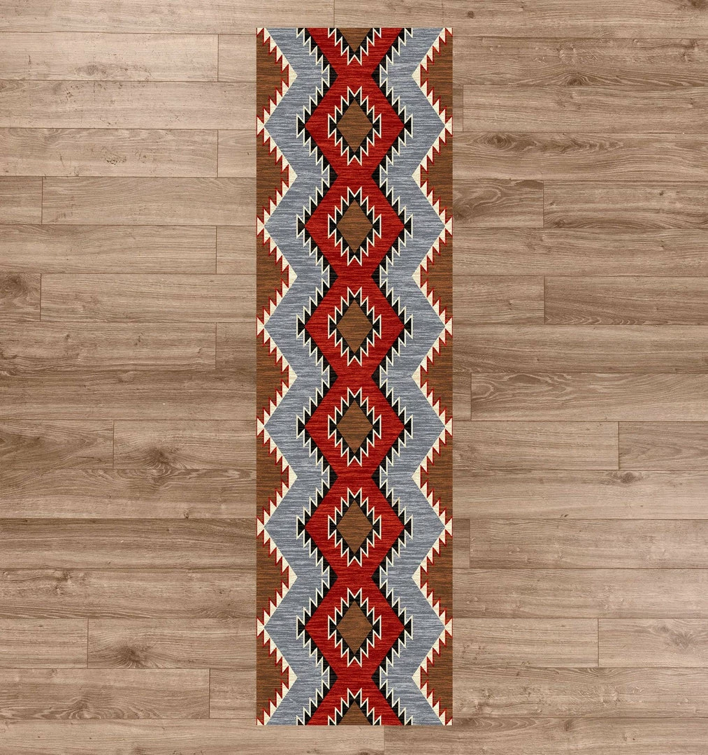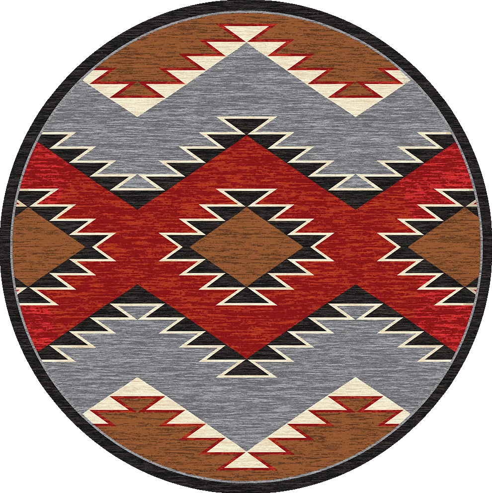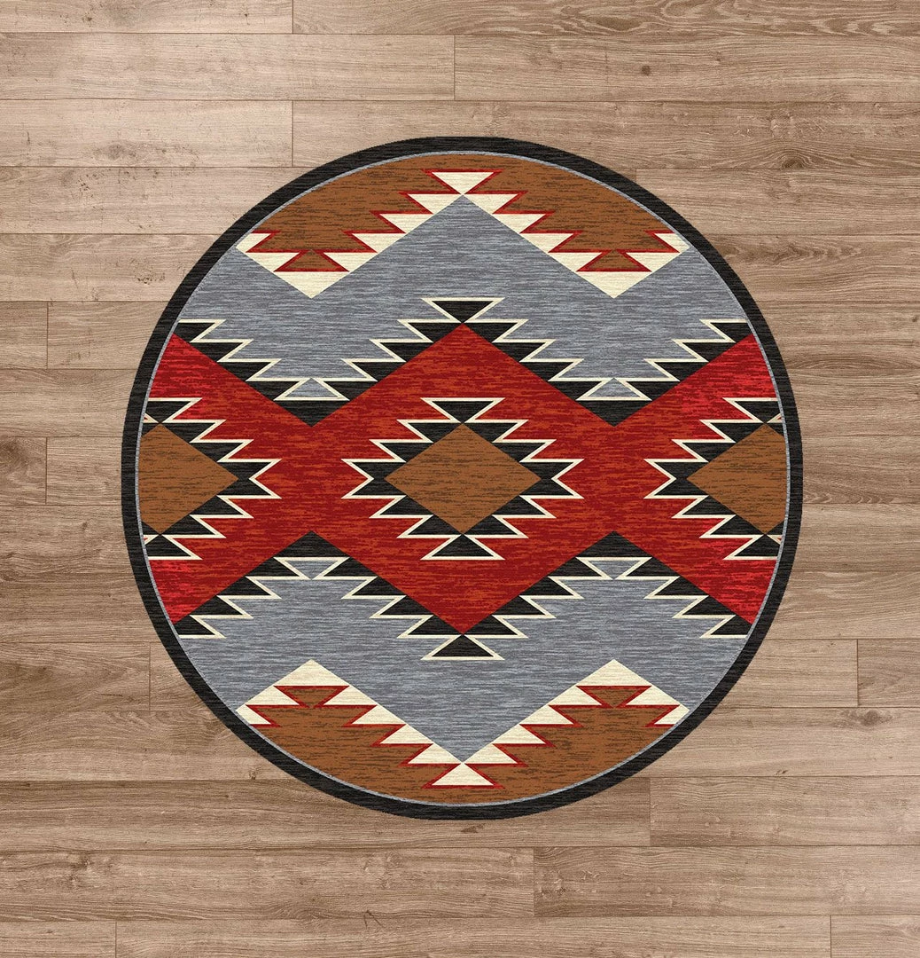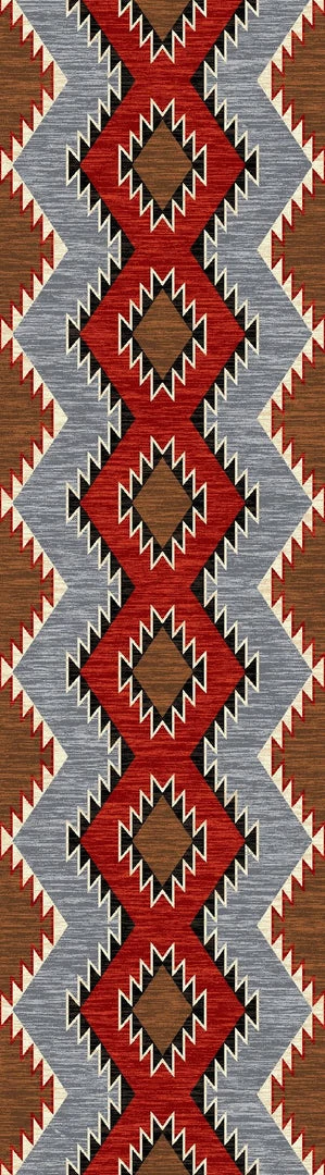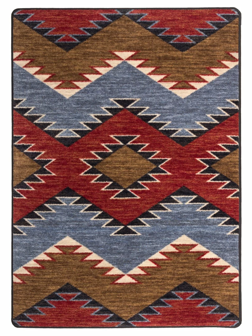 Heritage Multi is a historic pattern, based on trade blankets, will add instant warmth to your space. symmetric design will bring the West indoors and add color to your home, cabin, or business. Not just for floors – use on stage, in your truck bed, hang on wall or over railing. Offered in 6 sizes, made in the USA.