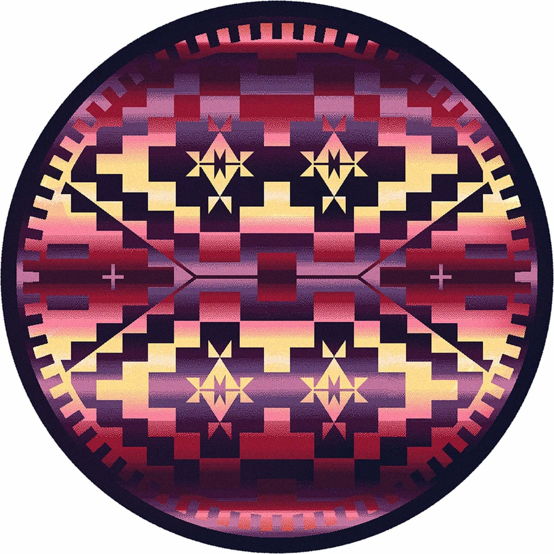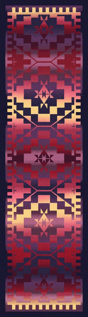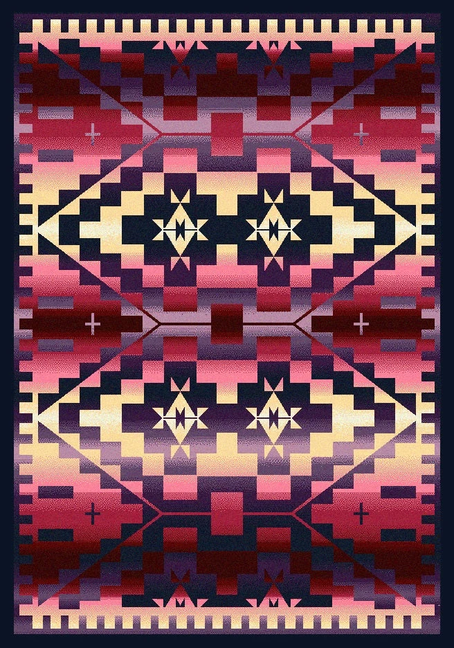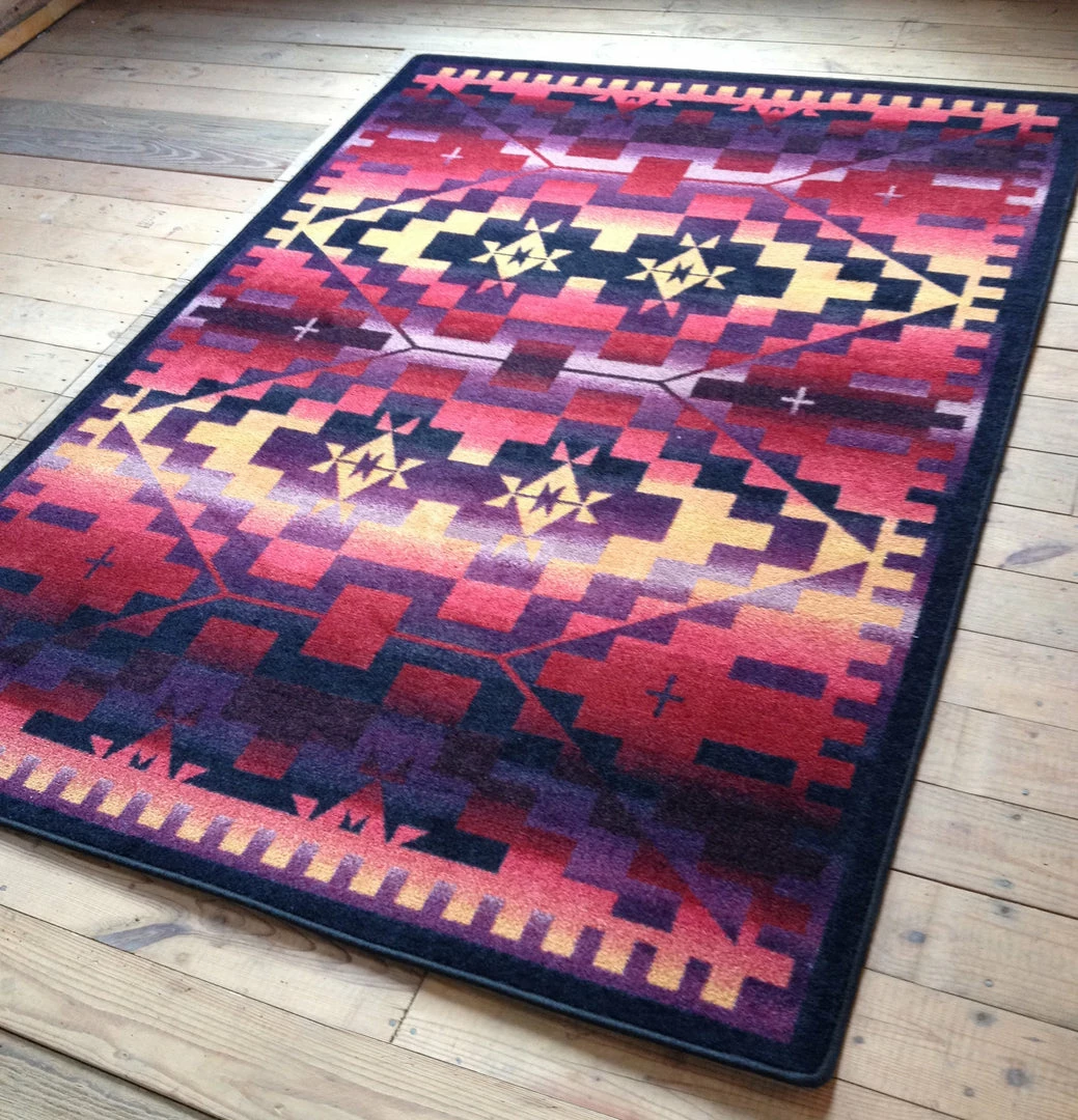 RAINBOW BLANKET SUNSET symmetric design will add color to your home or business. Great for the home, or your cabin hideaway! Not just for floors – hang on wall or over railing. Offered in 6 sizes, made in the USA.