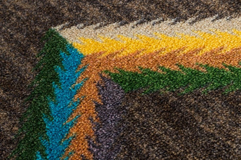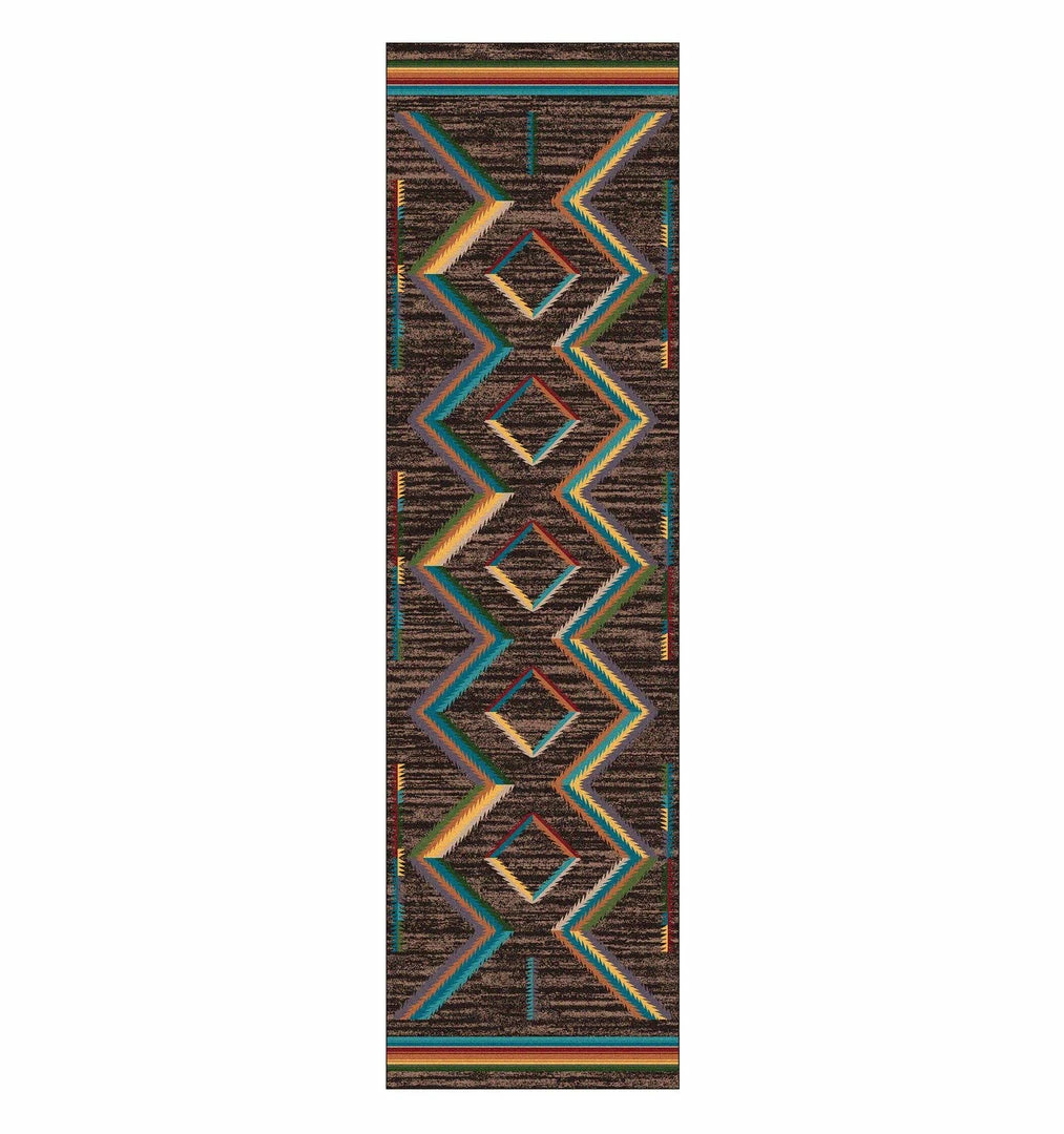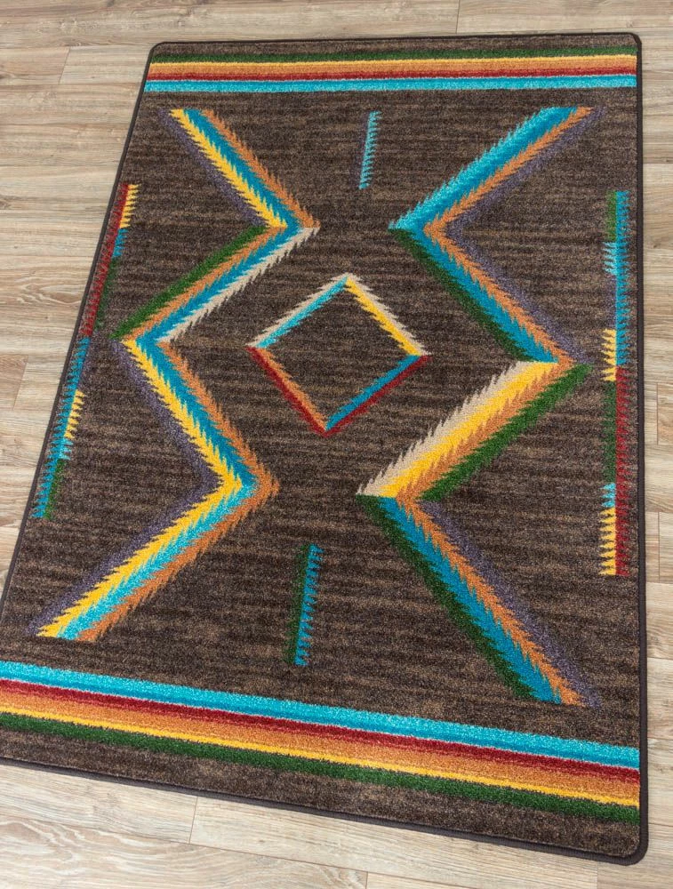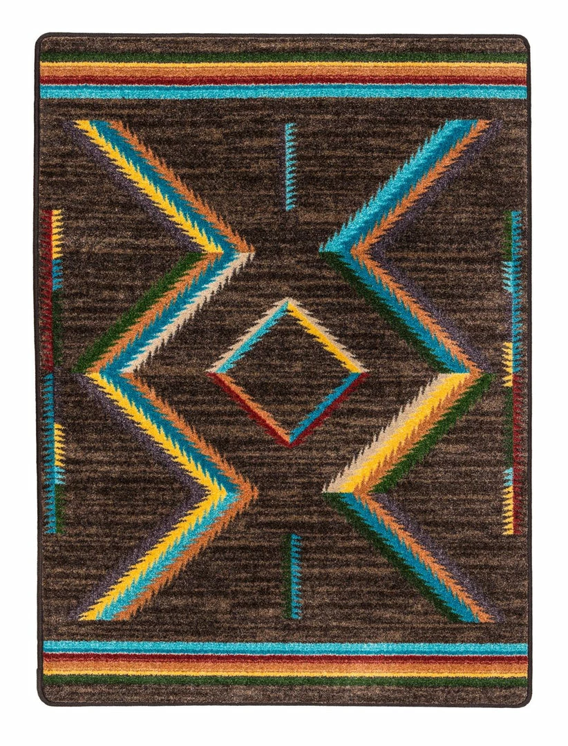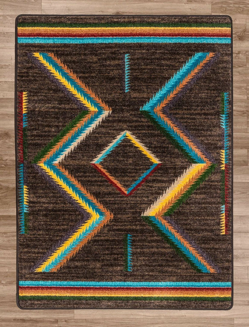 HOUR GLASS BRIGHT The symmetry in this textile inspired rug will balance any room with clarity, and the bright colors add the proper accent to your space! Timeless appeal. Imagine in a cabin or adobe dwelling yet modern enough for a home in the city. Bring the colors, designs, and history of the West to your home or office!