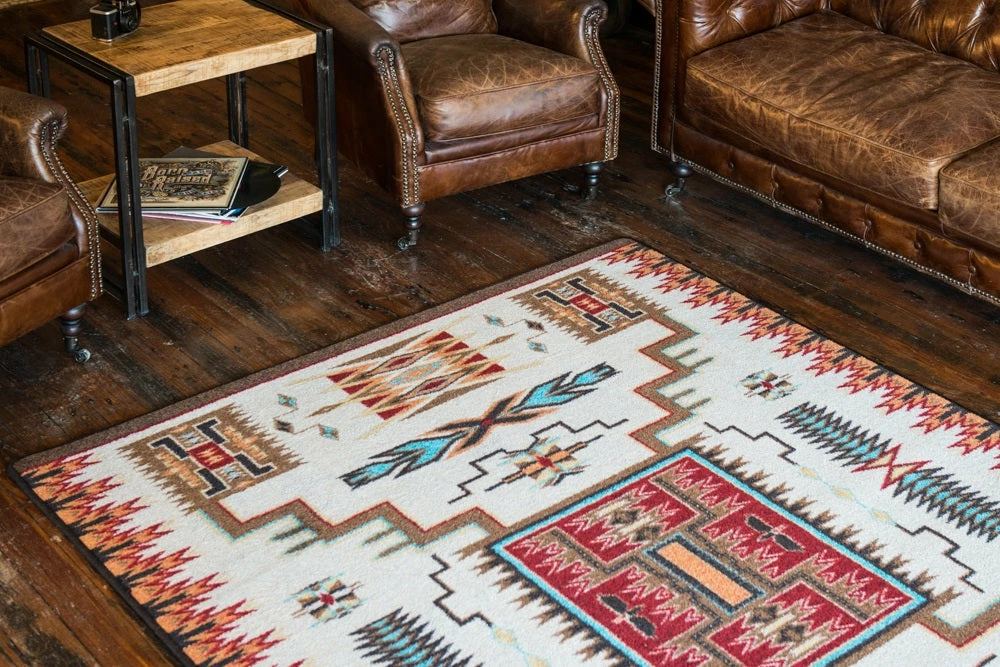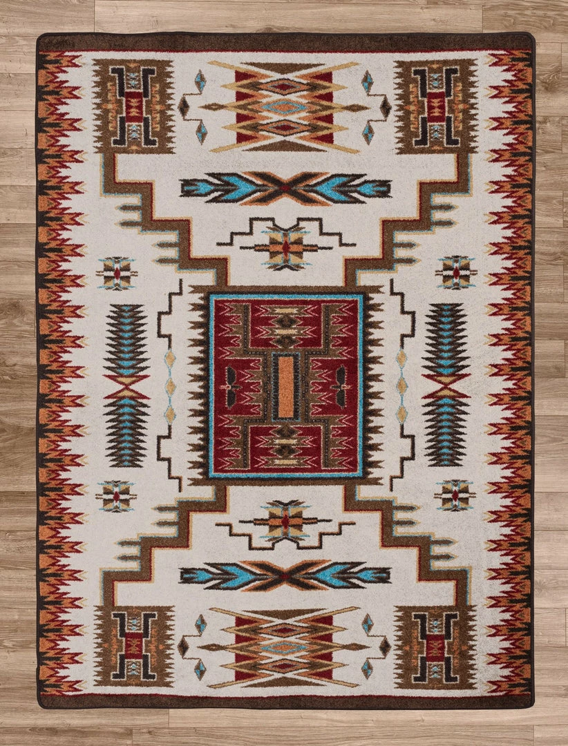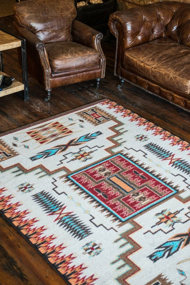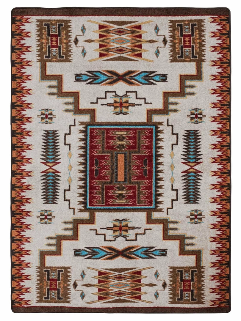 STORM CATCHER – RUST -rug, is inspired by historic textiles and classic Native American and Spanish designs found throughout the West and Southwest. The four corners of this modern rug meet in the center of the rug. This connection is made via stylized lightening-bolts. The saw-tooth edges of the design are indicative of historical storm designs. 6 sizes, made in the USA.