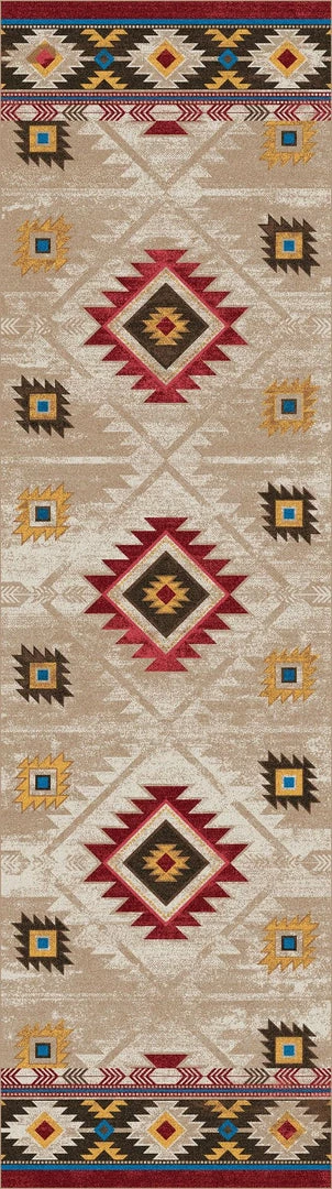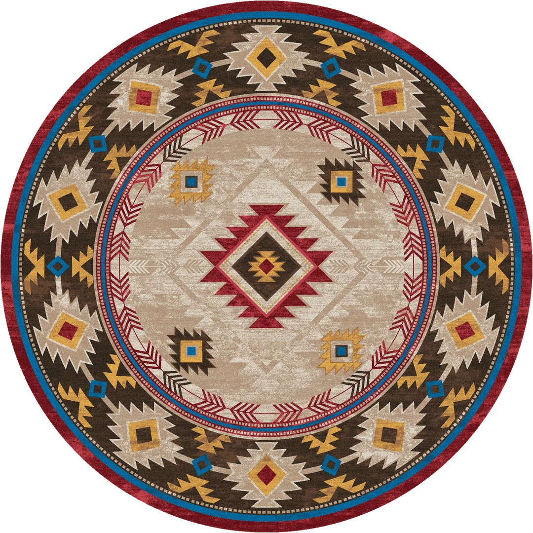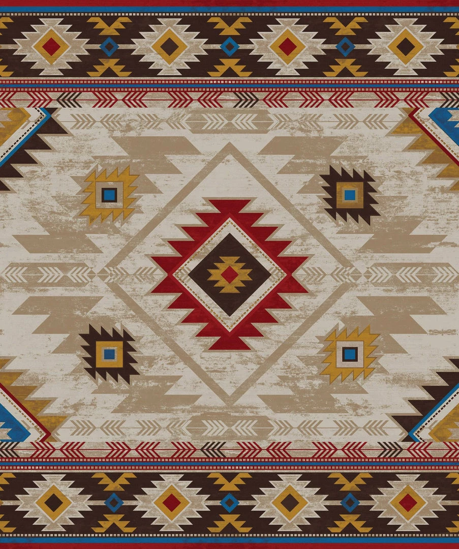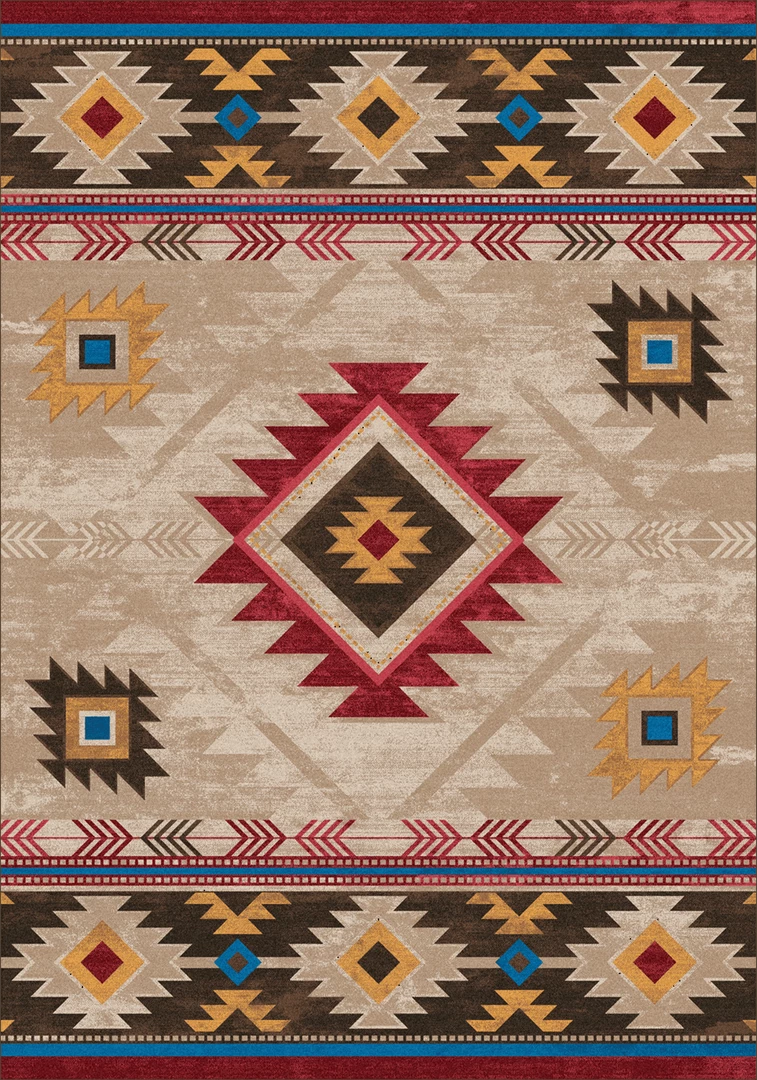 WHISKEY RIVER NATURAL design is rich and inviting. Bring in the colors of the southwest with this rustic-themed area rug. Great for the home, office, on stage, or cabin hideaway! Not just for floors – hang on wall or over railing. Offered in 6 sizes, made in the USA.