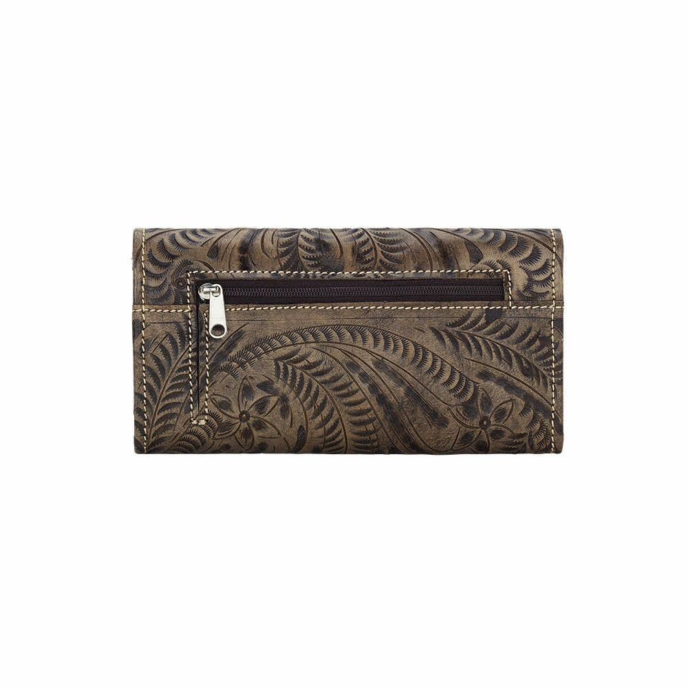 Annie’s Secret Collection: These wallets are perfect partners to the matching Annie’s Secret handbags and totes. Hand-tooled genuine leather and smooth spots combine to create an everyday classic. The popular tri-fold wallets include a back zipper coin pocket, and the full leather interior includes 13 credit card spaces, 1 clear ID space, multiple currency pockets, and a checkbook flap.