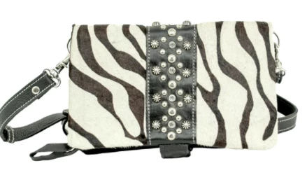 Hair On Hide Collection: Clutch bag…? Small purse…? Oversized wallet…? This crossbody bag is so versatile, you can decide! The inside contains one zippered compartment for your essentials and another for cash and coins. With 6 credit card spaces and a large bill space, this little bag is deceivingly big! All of this with a tabbed magnetic closure and a removable adjustable shoulder strap. Each piece is made by hand, one at a time.