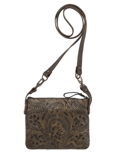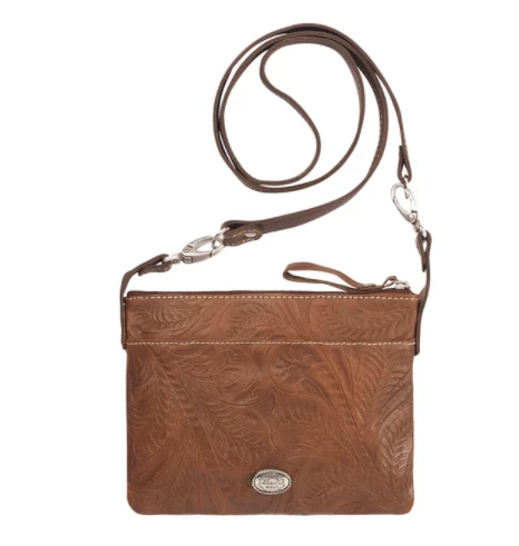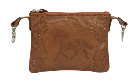 Tooled Collection: Go from a crossbody to a hip bag in seconds. Trail Riders feature a removable strap giving them the versatility of being worn as a crossbody or on belt loops as a hip bag. Made of hand-stained, hand-tooled genuine leather and have both interior and exterior slip pockets. Each piece is made by hand, one at a time.