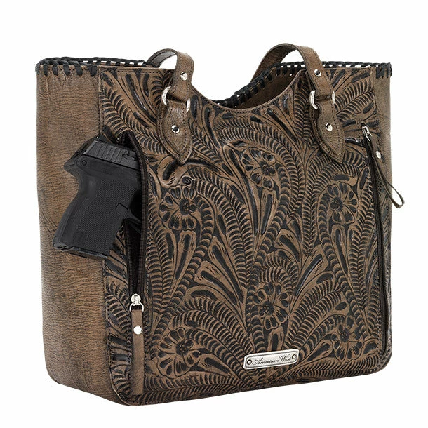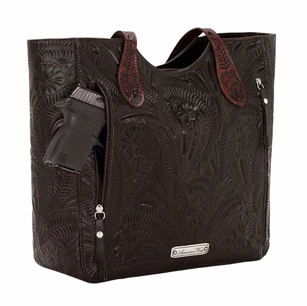 - American West signature cotton lining with 1 interior zipper pocket, 2 interior open pouches Includes a protective storage bag
