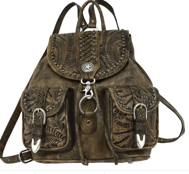 - Retro Travel Collection: Vintage styling in floral and basket weave tooling are blended on aged leather in the Retro Romance travel collection. The decorative detail may be enhanced with leather whip stitching, silver antiqued spots, a Western star concho and 3-piece buckle set. Contains extra inner pockets for better organization.