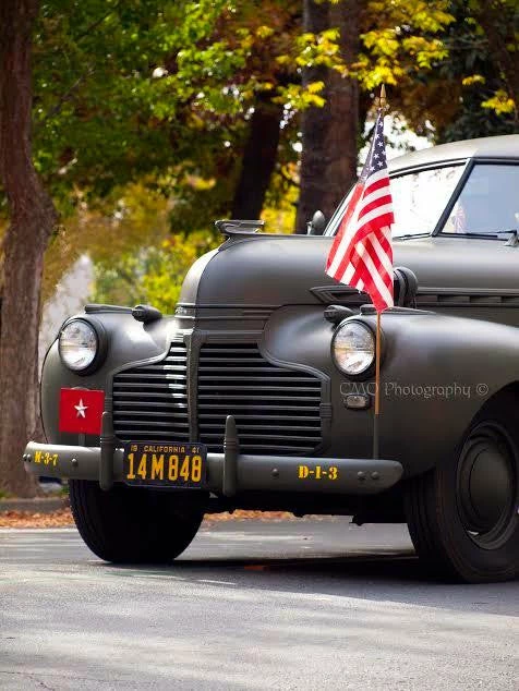 I don’t know if this old car actually served in war but it proudly carried Old Glory through a Veteran’s Day parade.