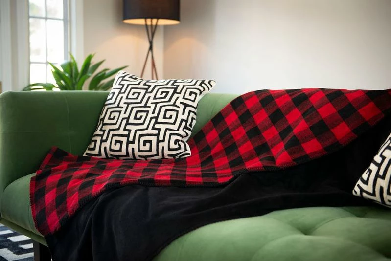 Wrap yourself in it or lay it down and use it as a giant checkerboard. Good times, either way you look at it. Classic American Heritage design of Red and Black Buffalo Plaid, reverses to Black. Mix and match with other colors and patterns.
