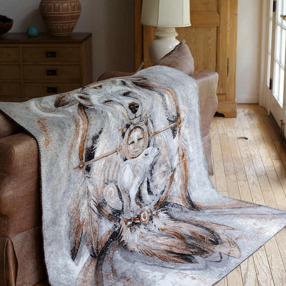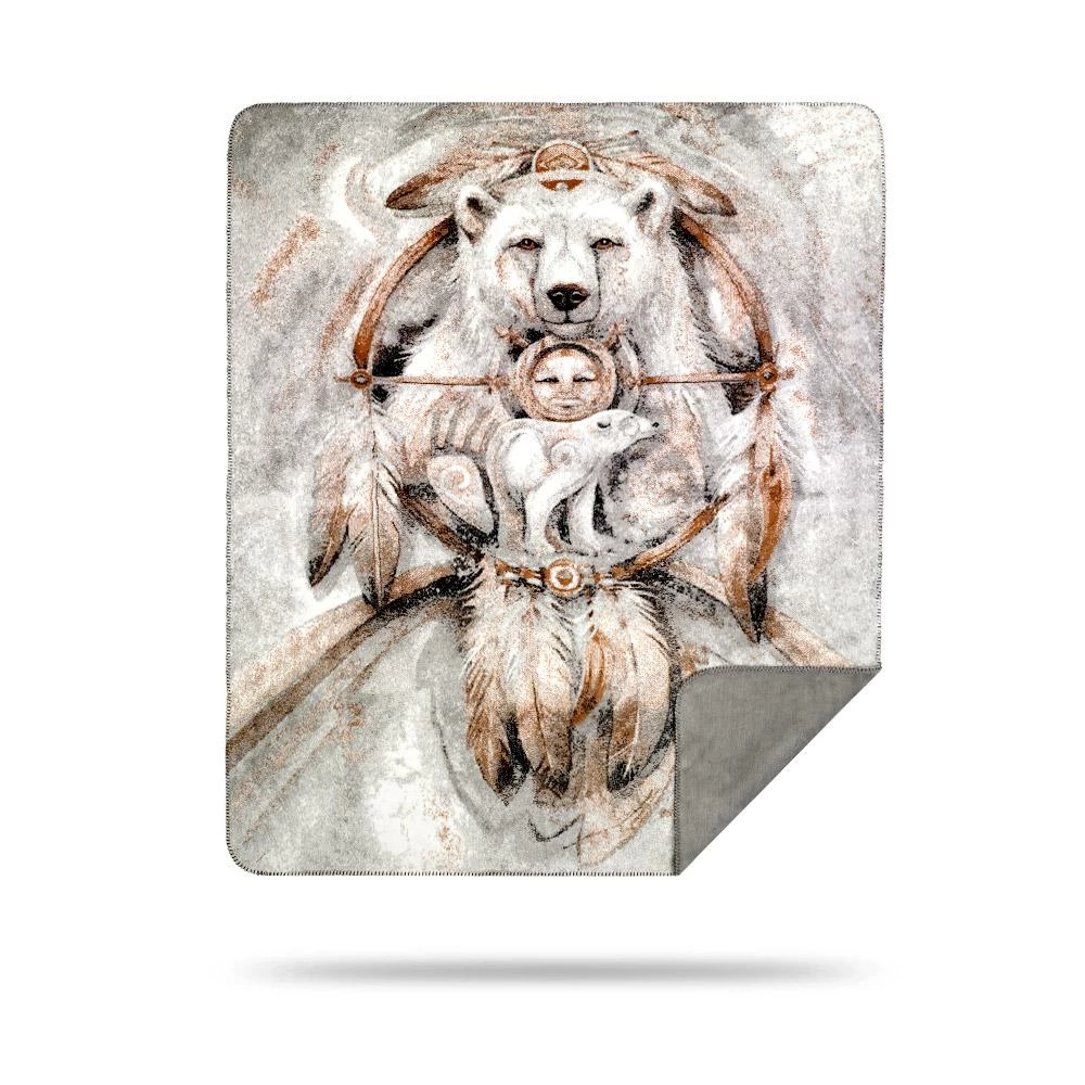 Spirit Bear blanket design. Perfect for pow-wows or ceremonies of a more laid back nature, like a nap. Colors cream, sterling gray, spice, black. Reverses to sterling gray.