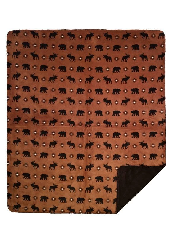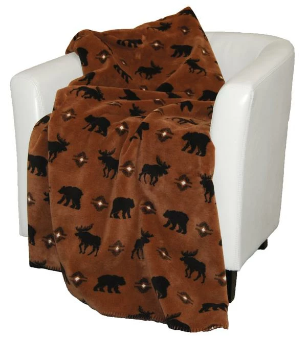 Black Moose and Bears walk across the front of this cozy blanket, “Wilderness Walk,” reverses to Chocolate. Companion 18″ square pillow available.