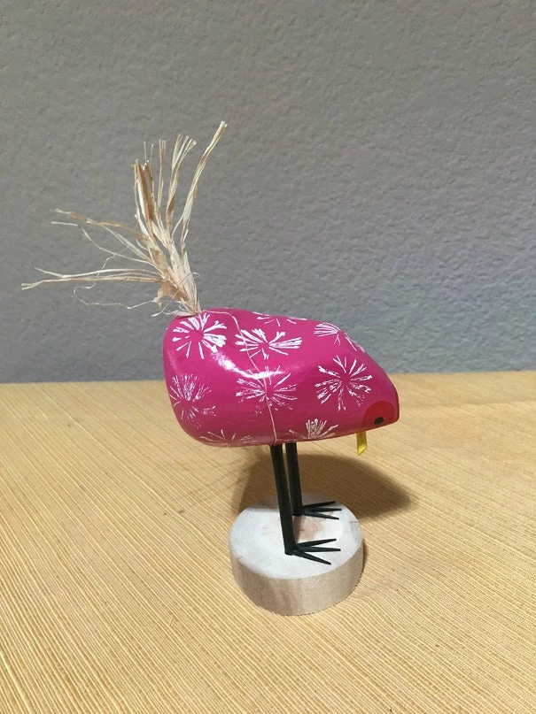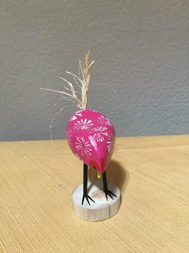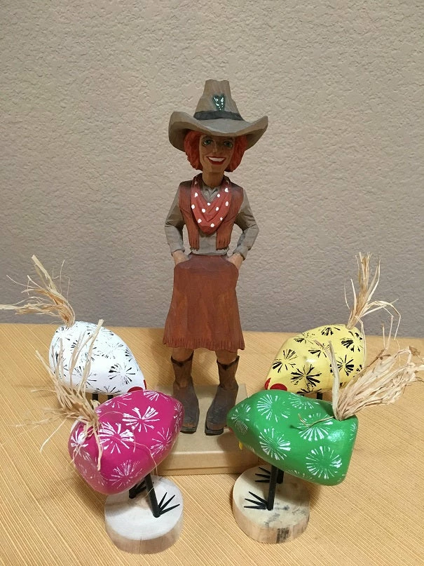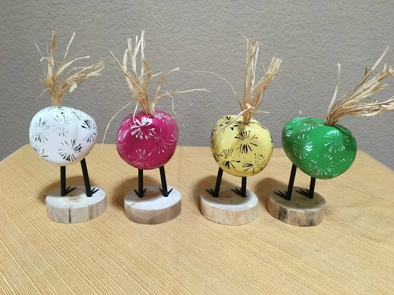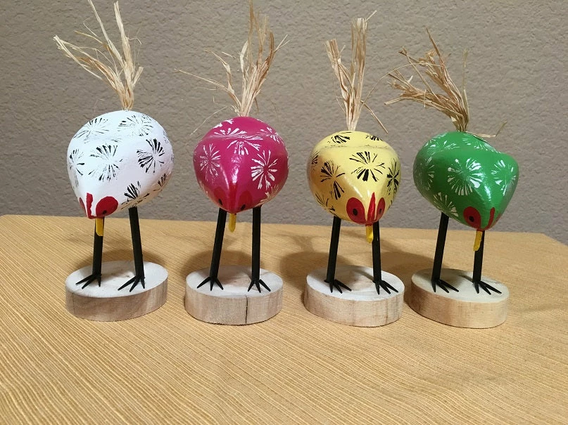 Pink, Yellow, White, and Green have flown the coop! - Hand carved by Navajo Folk Artists Edith Herbert John and Guy John, signed Edith John on the bottom of the base