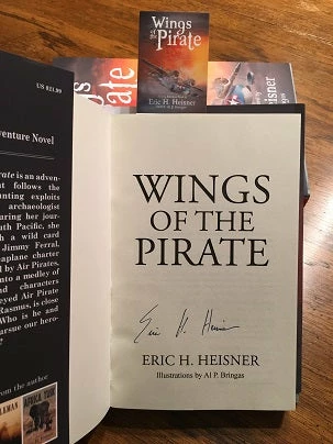 Wings of the Pirate is an adventure tale that follows the treasure – hunting exploits of renowned archaeologist Alexa Reid. During her journey in the South Pacific, she teams up with a wild card ex-navy flyer Jimmy Ferral, who runs a seaplane charter service. Chased by Air Pirates, the pair runs into a medley of colorful island characters while the one-eyed Air Pirate Captain, P.M. Rasmus, is close on their tail. Who is he and why does he pursue our heroine so intently?
