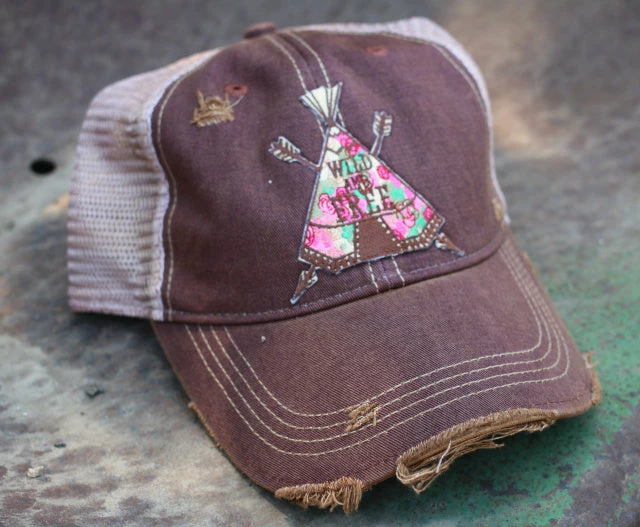 Great looking cap with attractive Teepee of print rose design and the words “Wild and Free”