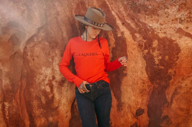 Original Cowgirl Clothing thermal, Vaquera, the word itself conjures up a romanticized Spanish cowgirl image; riding through the countryside with a rose in her mouth… Well actually they were/are hard working ranch hands that happen to be women.