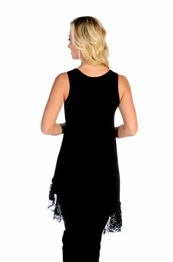 Lovely Women’s Lacy Laurel tank dress is ideal for any night out, available in striking jet black. A distinguished design with a lace hem surrounding the bottom.