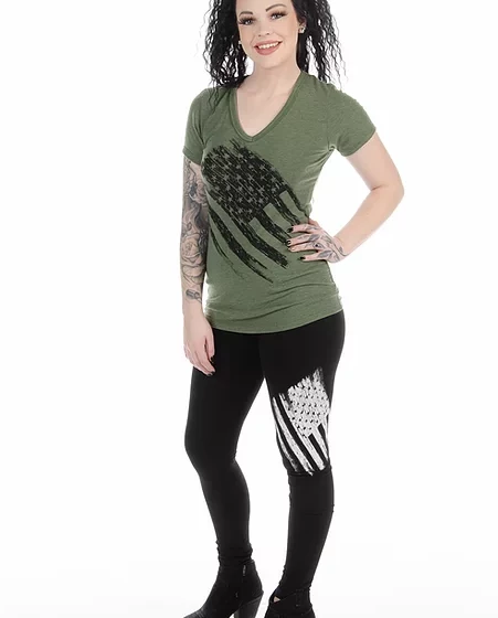 One of the most comfortable tops that you will ever wear. Lincoln, features a screen printed diagonal flag in a gorgeous army green color. This pairs perfectly with Justice Leggings.