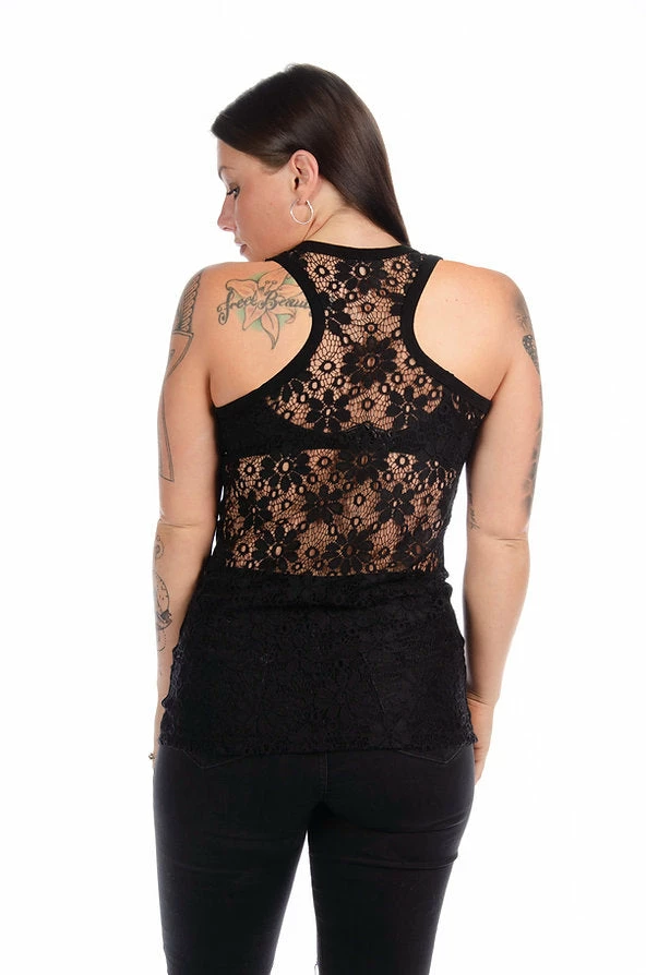 Liberty Wear, Live Free Ride Hard, new design. Skull and wing embellished rhinestone graphic tank with edgy lace back and slit bodice.