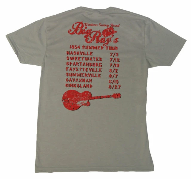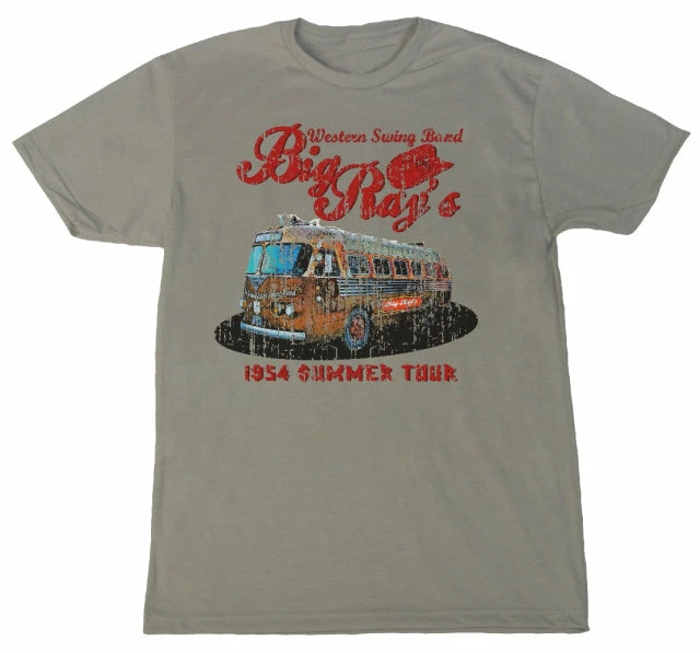Big Ray’s Western Swing Band Tour, Summer 1954 tee is so cool! Vintage band tour T-shirt with image of the band’s bus on the front. On the back are the actual tour dates and venues. Soft to the touch.