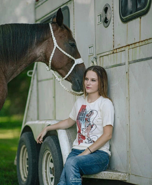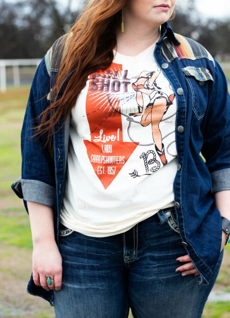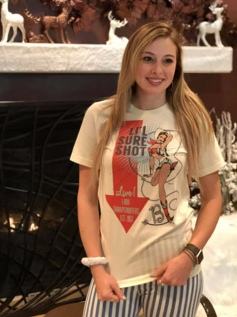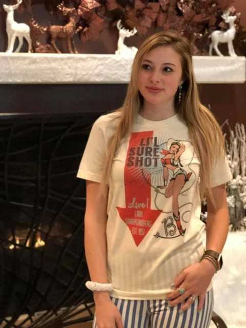 Inspired by vintage rodeo posters, cowgirl pulp novels, and 1940s/50s pinup girls, Rockin’ B Ranch designer Jess Snell blends her original illustrations with eye-catching graphics to create her one of a kind tee shirt designs.