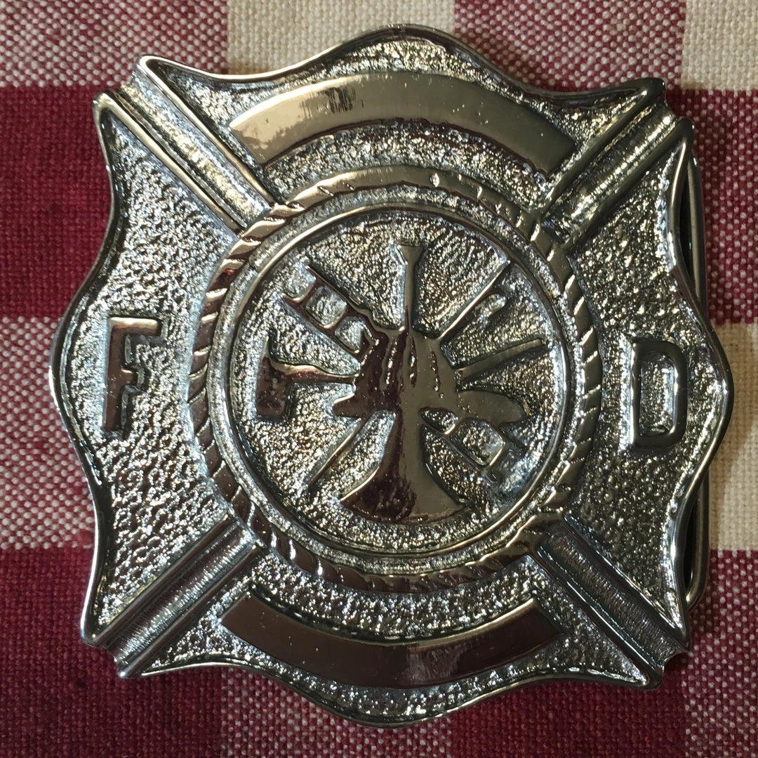 - Trophy square silver tone buckle with Fire Department insignia