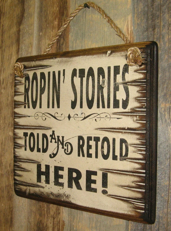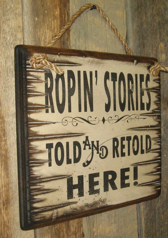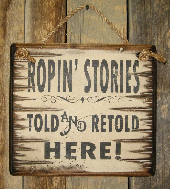 This sign tells the truth for any team roper, ropin’ stories will be told and retold. Beware!