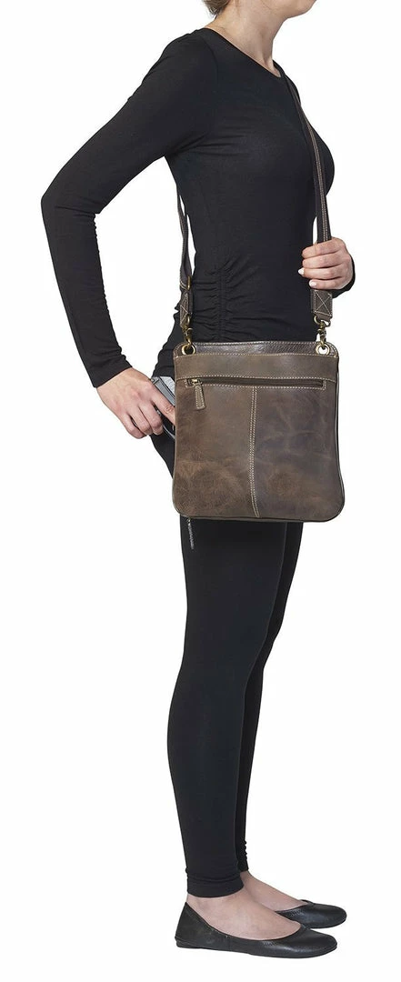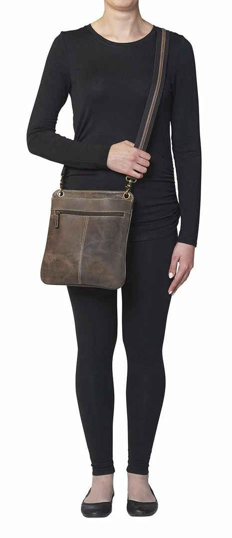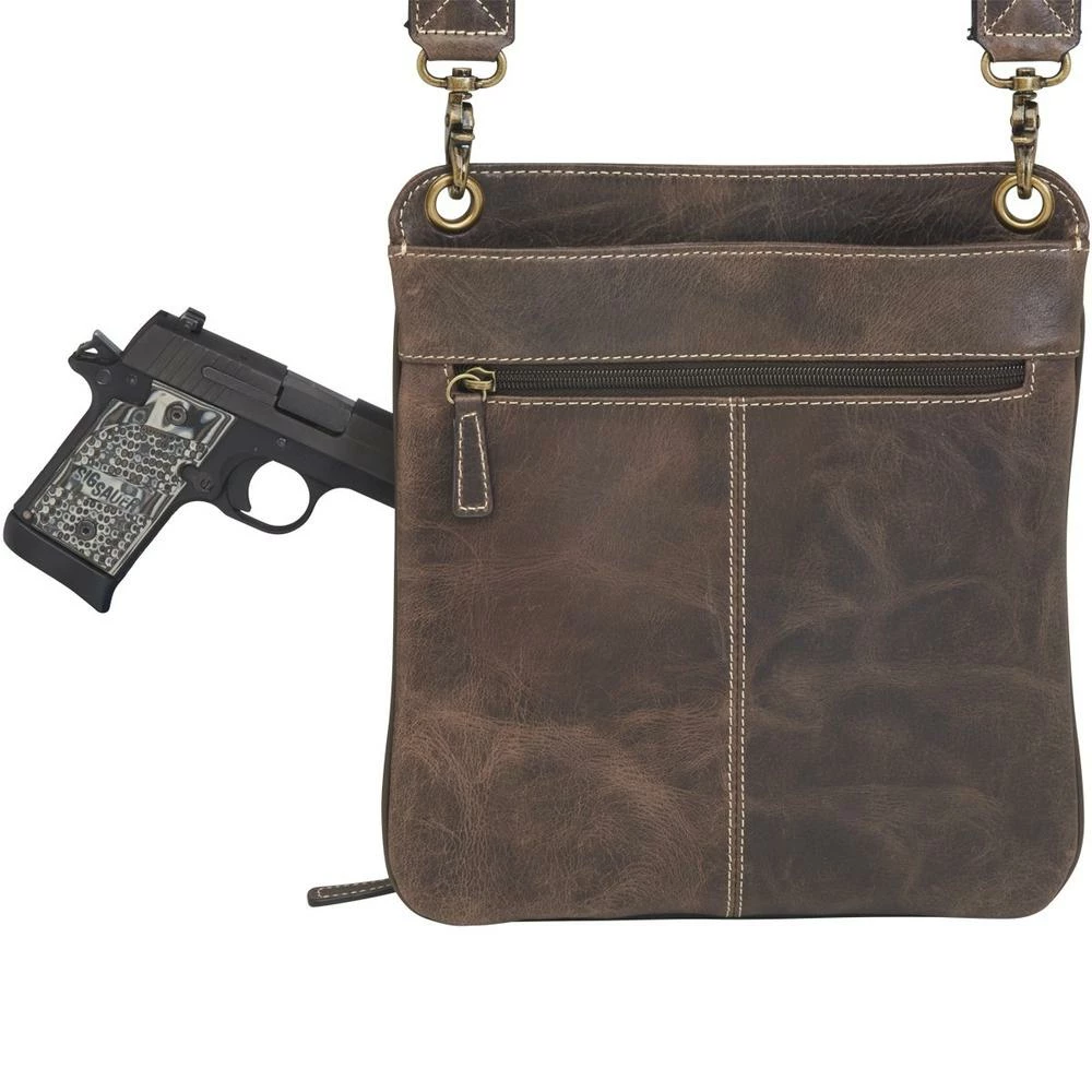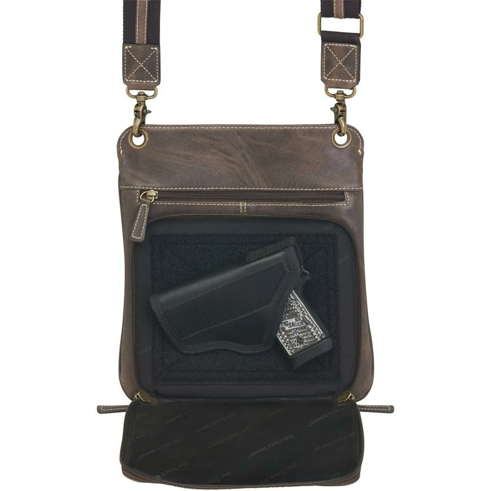 Made of distressed vintage tanned full grain water buffalo leather, the more this leather is used and handled the better it gets! Rich distressed patina comes with age. The oils infused in the tanning process makes it wonderfully soft and yet durable. If you are looking for a good looking, durable, bag that will hold your essentials – this is it! AND there’s another benefit – an additional compartment for concealed carry or to discreetly store your important documents like a passport, additional cash or ID cards.