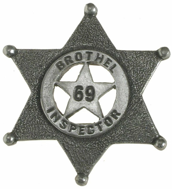 - Old West, historic Brothel Inspector Star badge measures approximately 2″ H x 2″ W