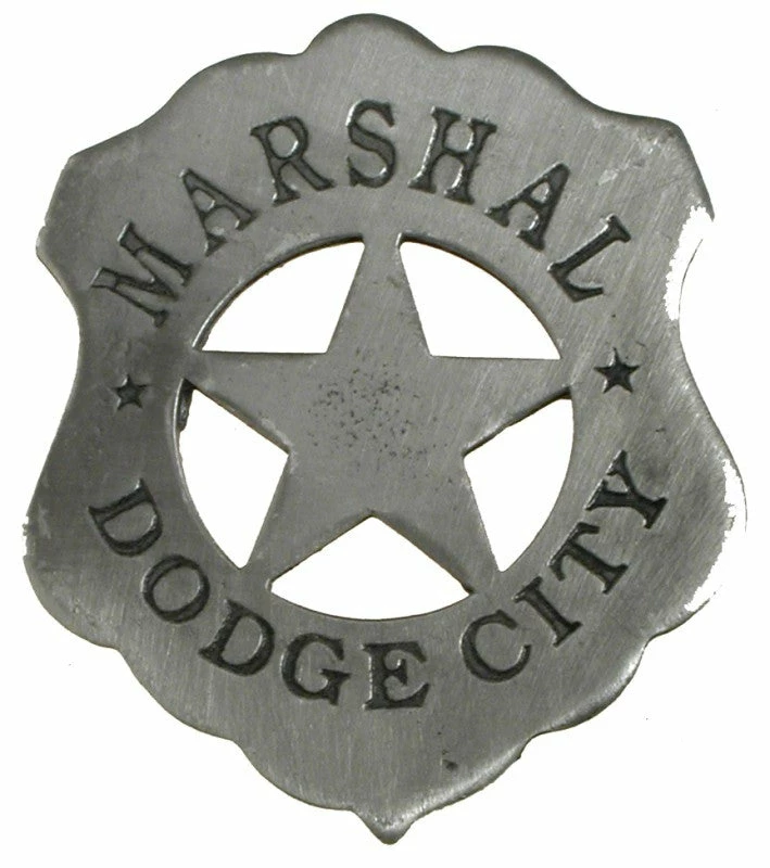 - Old West, historic Marshal Dodge City badge measures approximately 1.5″H x 1.5″W