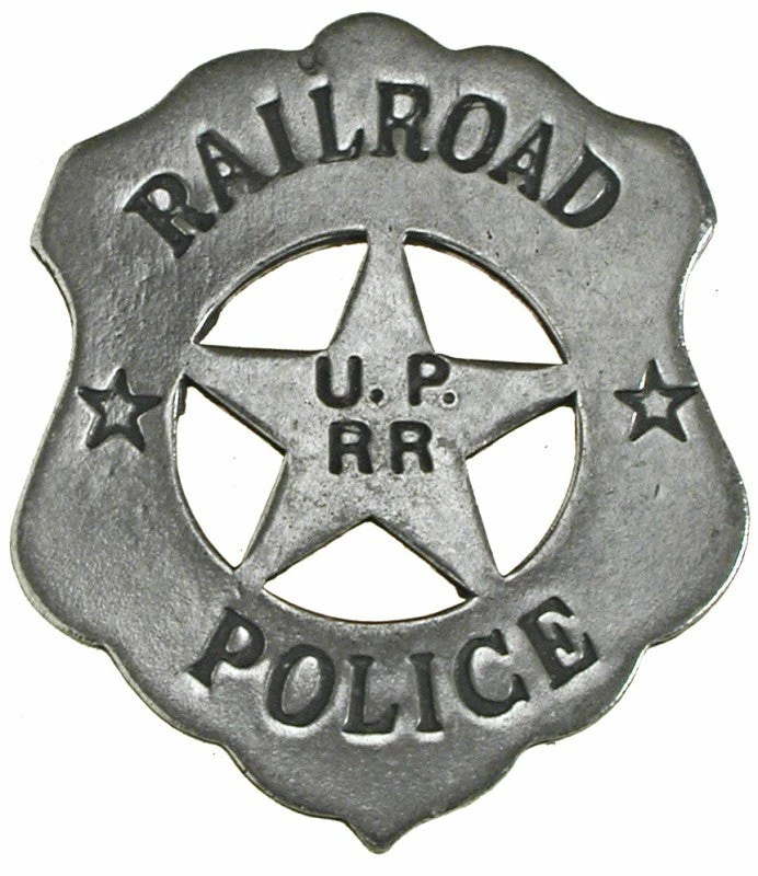- Shield with a star in the center and cut out background. RAILROAD along the top and POLICE across the bottom. U.P. RR on the center star