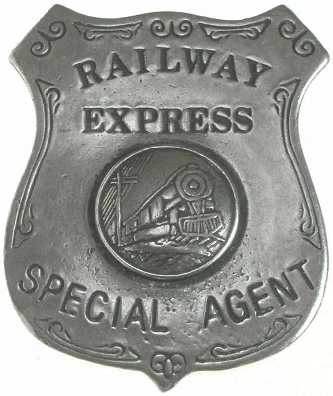 - Railway Express Special Agent shield badge measures approximately 2″H x 2″W