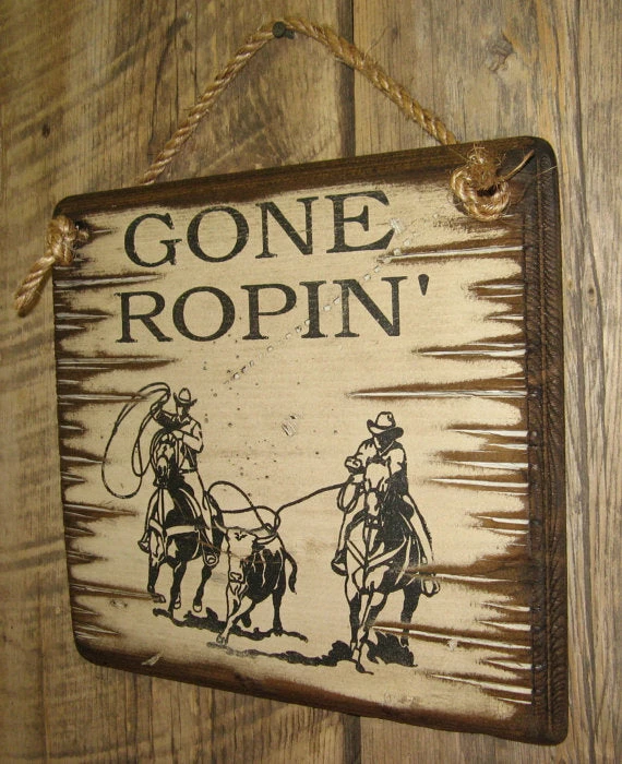 This sign, with horse and rider, will tell everyone where you want to be! If you are a team roper, you are always wishing that you were “gone ropin’!” Handcrafted with pride!