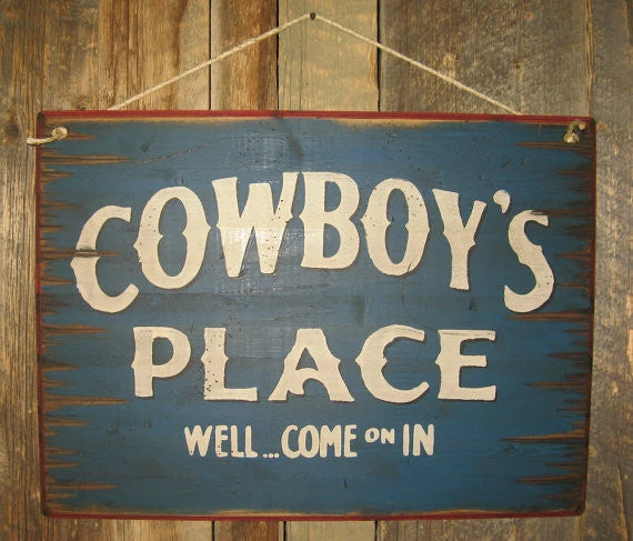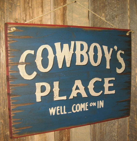 - Welcome everyone to the “Cowboy’s Place” with this sign