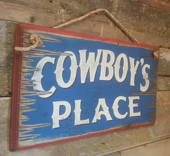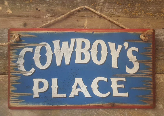 - Welcome everyone to the “Cowboy’s Place” with this sign