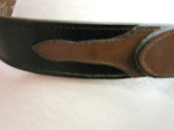 Tan billets decorate this thick and sturdy belt - Hand finished saddle leather with edge stitching