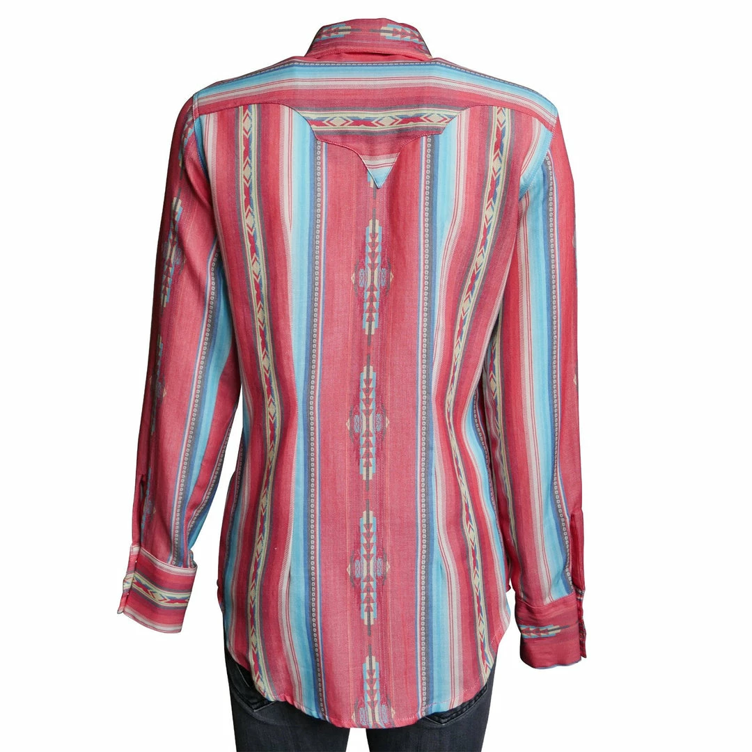 Rockmount Ranch Wear got it right with this luxury serape stripe. The custom designed fabric is so special. All natural cotton yarn dyed fabric is ultra soft, in sun kissed hues. This true Southwestern design, in color and texture, features Native influence, ombre gradations, various stripe and dobby patterns merging into one of their most popular shirts. Features Rockmount’s signature Sawtooth pockets and white Diamond snaps. The tailored fit is tapered. Made in USA.