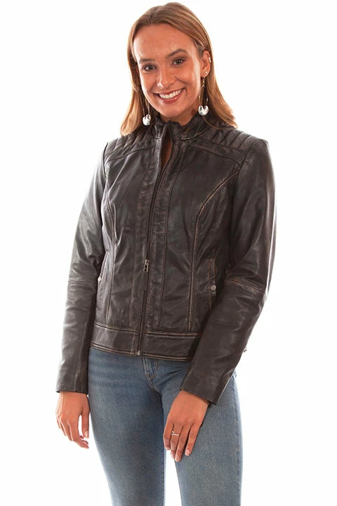 Classic vintage lamb jacket features zip front and two lower vertical welt pockets. Ribbed detailing on the shoulders gives this jacket a highend look. Back features unique fitting seams and the sleeves have zip closures. Import.