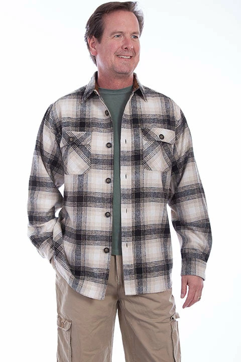 This yarn dyed Outdoor Corduroy Plaid shirt features a hip casual pattern. Button front and cuff closure, point collar and a left chest pocket. 100% cotton.