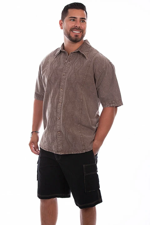 You’ll want one in every color! Men’s Trac shirt features a tonal embroidery cross stitch pattern running down the front of the shirt. Easy care, easy wear, easy living!