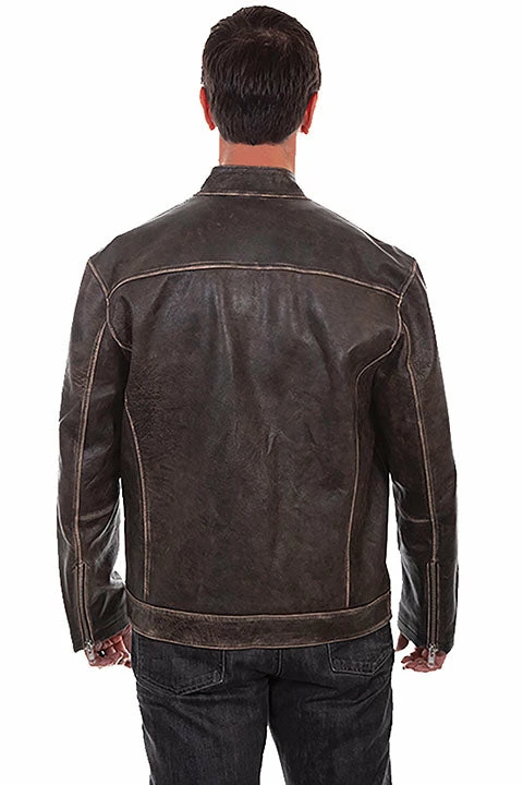 Rev up your engines! Heavy weight, form fitting jacket in charcoal sanded calfskin is sure to be an instant favorite. Although brand new, when you put this on you’ll feel like it’s an old friend. In keeping with the vintage feel, printed on the center of the 100% black polyester lining is a fun motorcycle theme design.