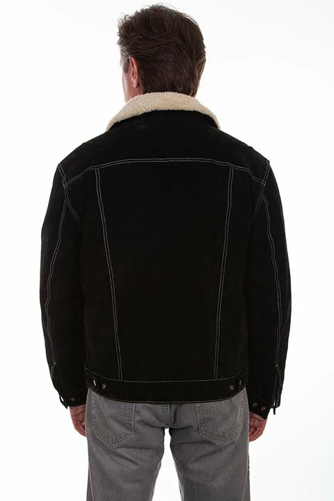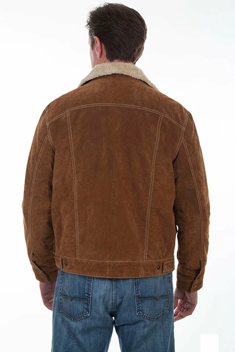 Scully Men’s Western handsome boar suede jean jacket features a decorative knit inset on the front yokes that compliments the suede cafe brown color. Snap front closure with a faux shearling point collar and inside lining for extra warmth. Two chest flap pockets with snap closures and two lower side entry pockets for convenience. Two waist cinch snaps adjust the fit. Faux shearling lining and nylon lined sleeves with inside pockets complete the interior.