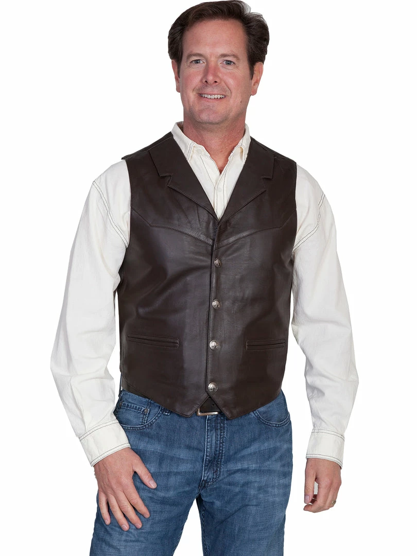 Western style, soft lambskin vest with lapels. Dress up for special events, or wear with casual shirt for laid back days.