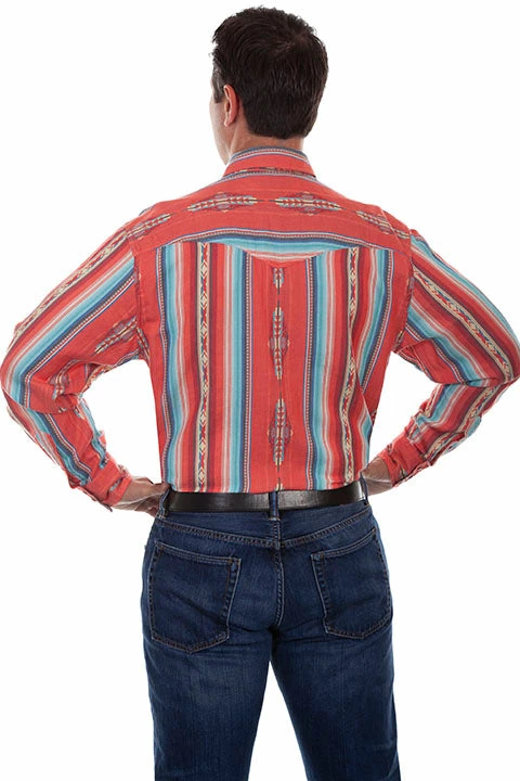 - Coral serape southwest print shirt with contrasting trim