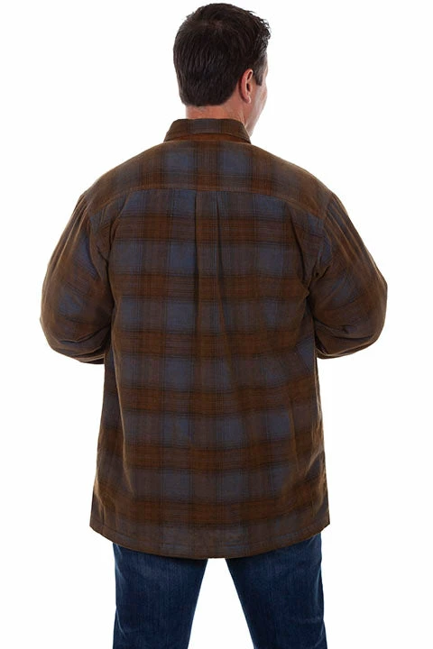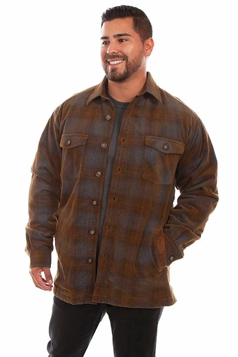 This 100% cotton yarn dyed Outdoor Corduroy Plaid shirt features a hip casual plaid pattern in Blue and Brown. Button front, left chest pocket with button closure and point collar. Pair this with a colorful rib knit cotton t-shirts.